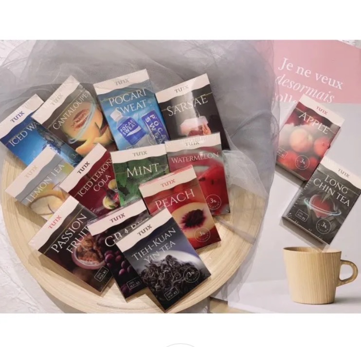 葡萄, 百香果, 荔枝, 鳳梨, 蘋果, 芭樂, 西瓜, 蜜桃, 哈密瓜, 藍莓, 莓果, 寶礦力, 鐵觀音, 龍井, 薄荷, 煙草, 南極冰, 老冰棍, 可樂, 沙士糖, 檸檬茶, 芒果, 奇異果, 綠豆, 雪梨, 蔓越莓, 奶茶, 雪碧